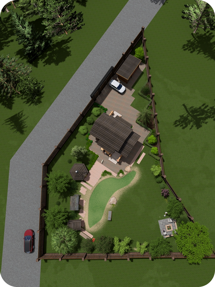 Генеральный план, дендропроект, проект вертикальной планировки, схема освещения и т. д.